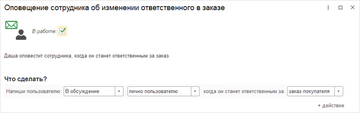 Во-вторых, Даша известит, когда сотрудник будет назначен ответственным за заказ, чтобы не пропустить ни одного заказа.